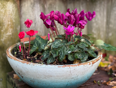 Above right: Potted cyclamen – so many colours to choose from and some are strongly scented